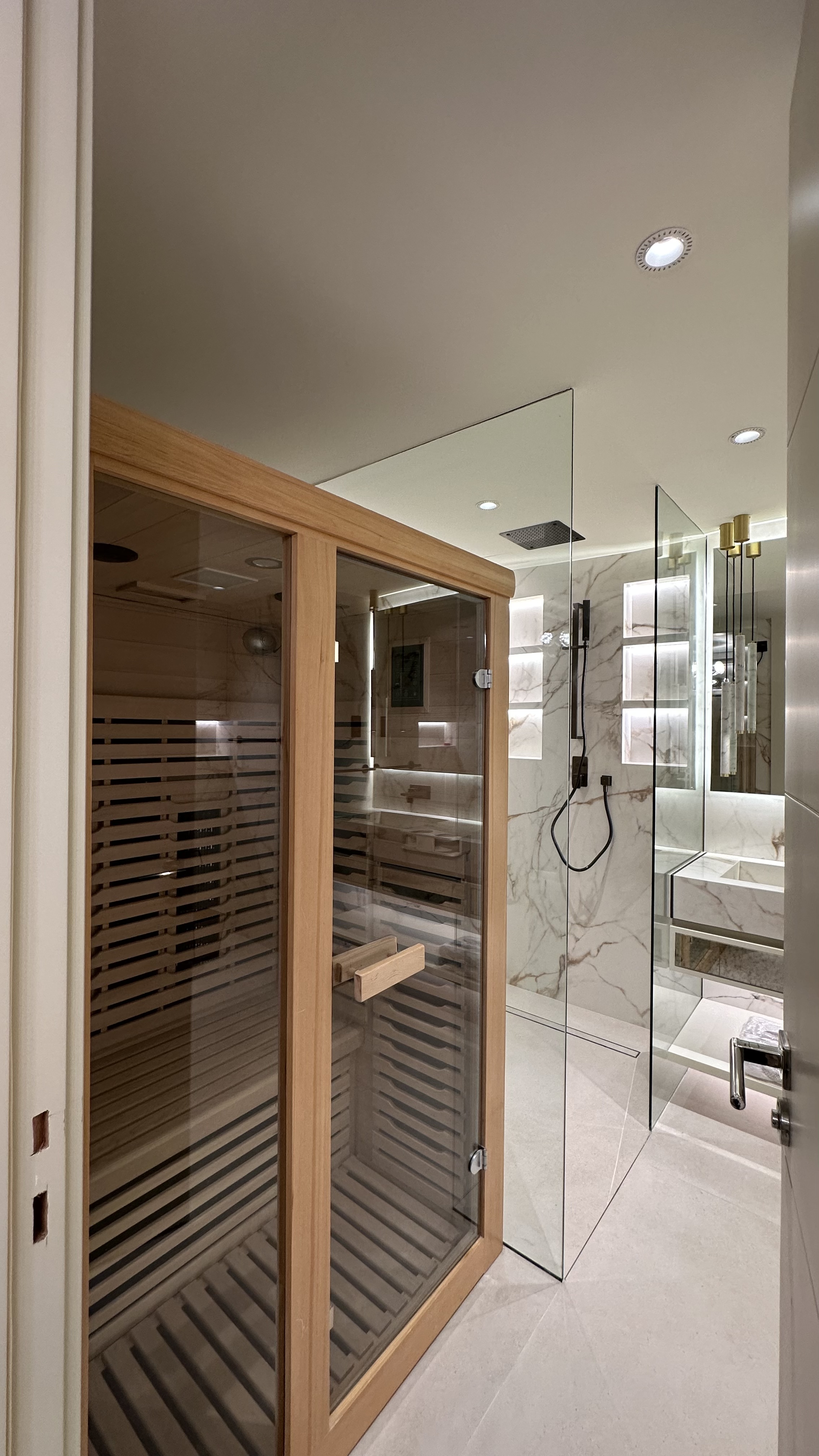 Not just your average renovation, this 2-bedroom apartment was crafted to reflect our client’s refined taste. Featuring stainless steel countertops, walk-in wardrobes, exquisite fixtures, an in-built sauna, wine cooler, and more, the result is a truly bespoke modern home.